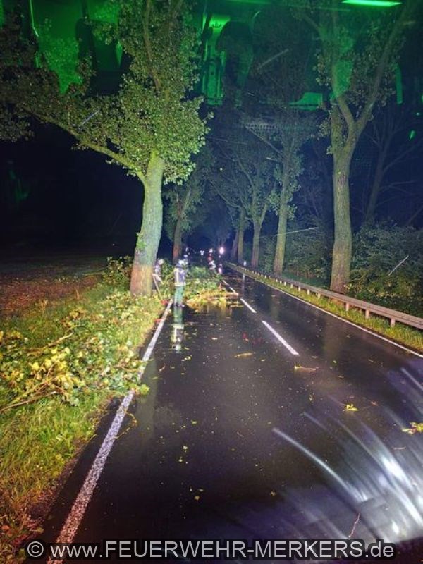 Unwetter blockierten mehrere große Äste die Fahrbahn zwischen